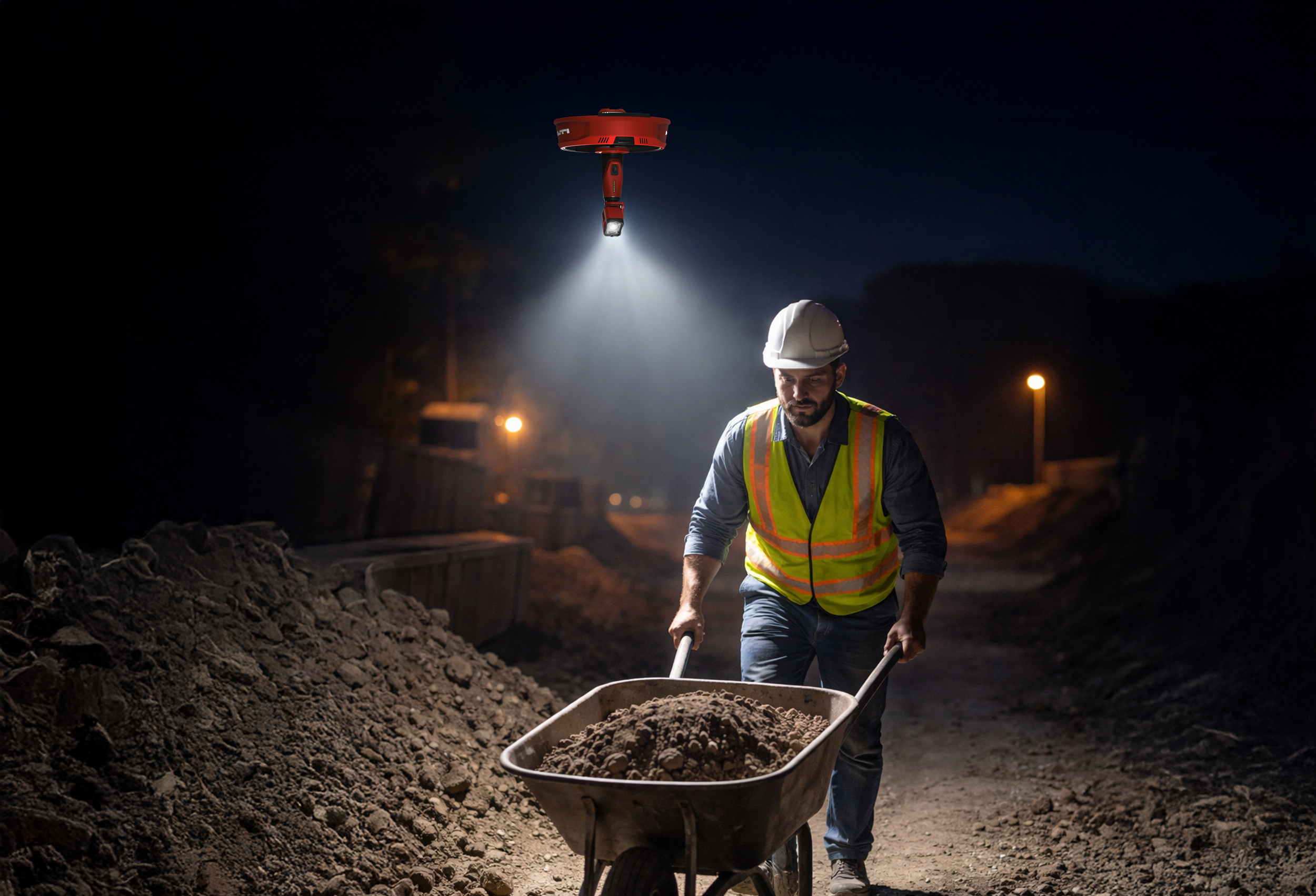 Construction work is rarely stationary. Flite uses AI and onboard sensors to continuously adapt lighting to the user’s position, improving safety and visibility on night shifts.